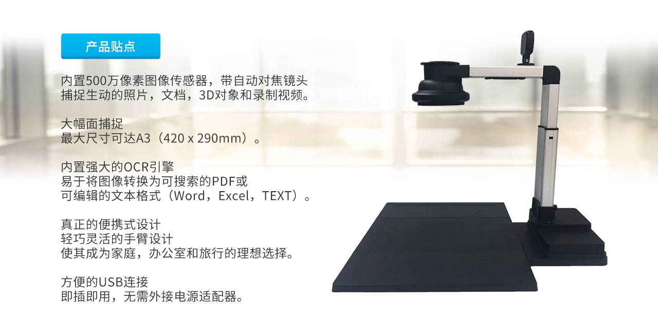 VS5303是一款多功能,可扩展的文档拍摄仪,适用于金融,保险和柜台服务行业。 其完美的解决方案使办公室工作更轻松,更快捷,更高效。 VS5303捆绑了强大的文档摄像头软件,可以捕获照片和文档,录制视频,制作副本,发送电子邮件,识别条形码和ID,执行OCR并将图像转换为可编辑的Word和Excel文件格式。 VS5303的应用场景包括政府部门,医疗机构,银行和金融,保险公司,学校以及需要文档扫描或复制的任何地方。 最重要的是,VS5303独特的可扩展设计允许添加指纹扫描,ID卡扫描和磁条读取器模块组合等高级功能。