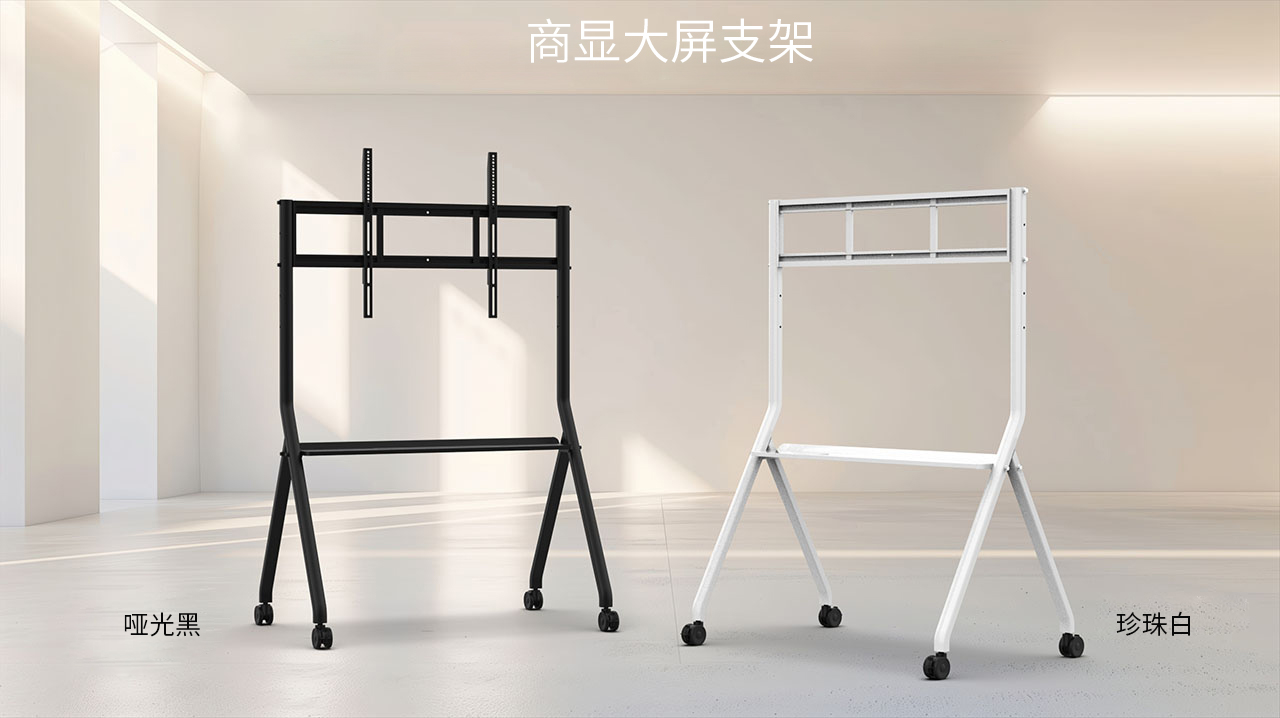 KZH11是一款坚固耐用的多功能落地支架,适用于商显大屏,支持160公斤以内的大屏。与65英寸、75英寸和86英寸的型号兼容,具有平滑滚动的4英寸可锁定轮,可轻松移动并保持稳定。它有黑色和白色两种样式选择。