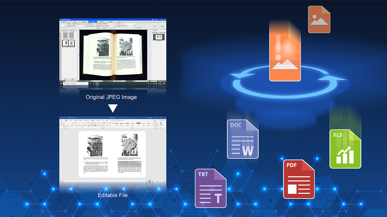 With support for over 130 languages, the embedded OCR functionality converts scanned images into searchable PDFs and editable Word, Excel, or Text files,