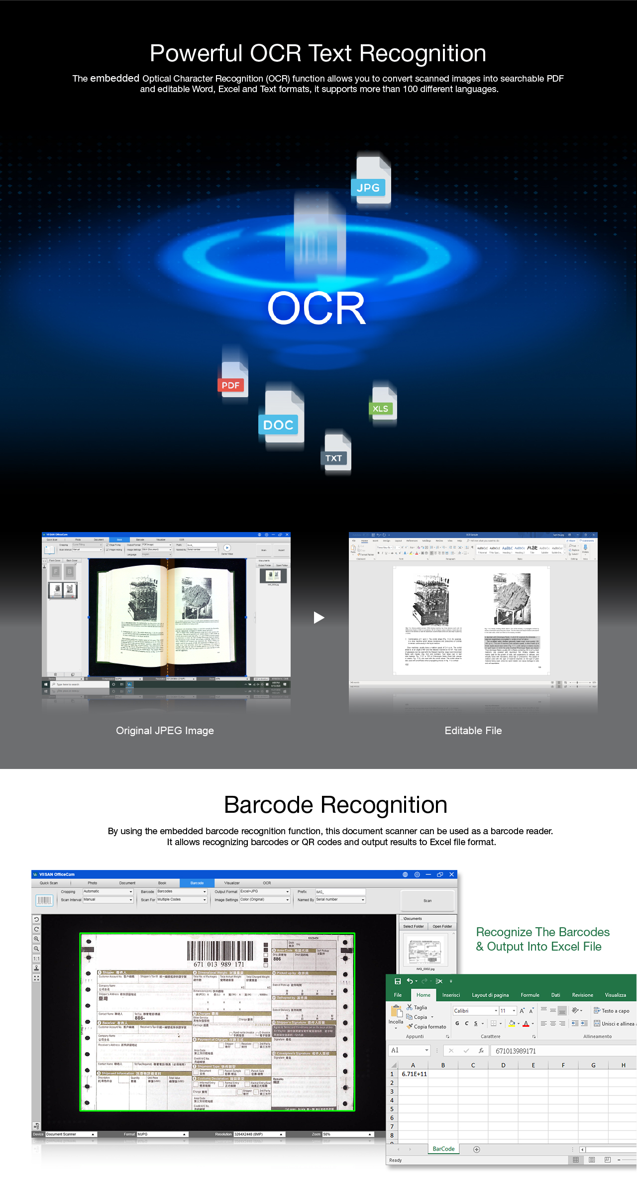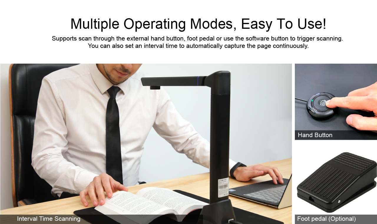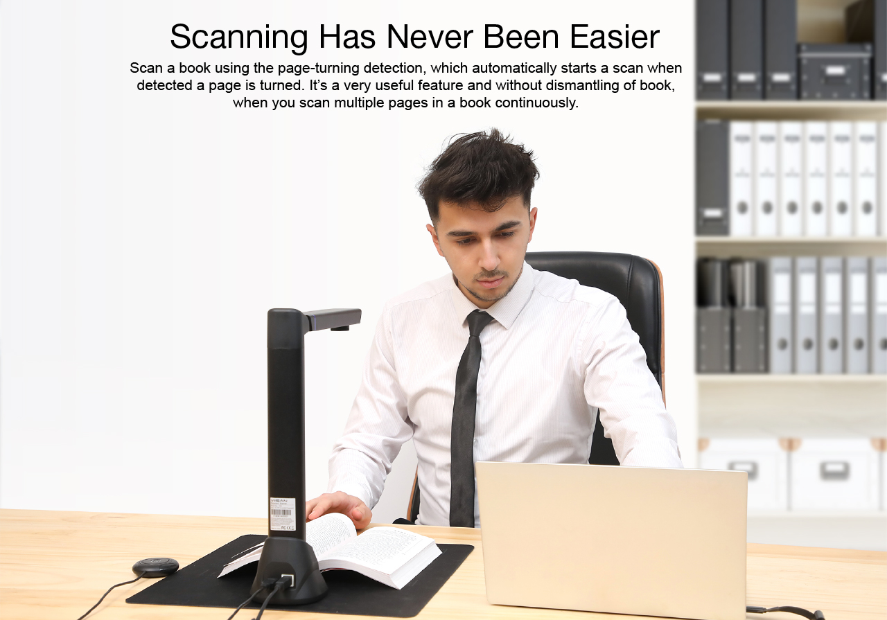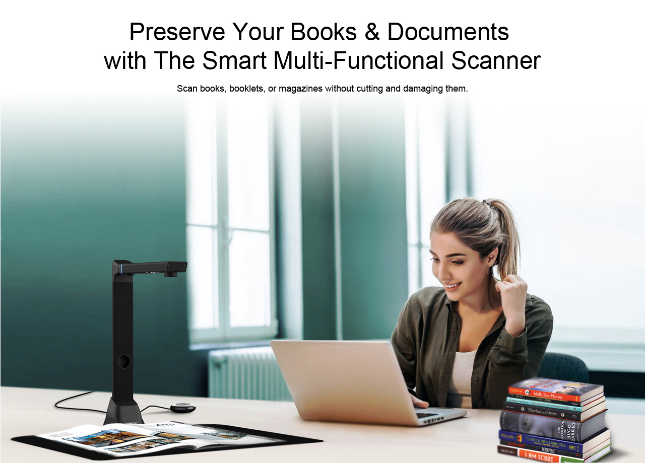 The VK16 is a versatile and highly accurate overhead book scanner, it’s a great ideal tool for tethering to your PC or laptop. With its built-in 16-megapixel sensor, you can take snapshots, magazines, books, documents, business cards, 3D objects and present them on a computer. All of your scanned images can be converted to PDF or editable Word/Excel/ePub/Txt files with its OCR function. Along with these great features, you can use the bundled OfficeCam scanning software with this smart device to get great results while scanning books. For example, it can automatically scan when the device detects a page being turned. The device also automatically digitally flattens curved pages, erases fingers from the scanned photos, repairs the damaged edges of documents, rotates pages based on text orientation, and automatically splits double-page into separate images.