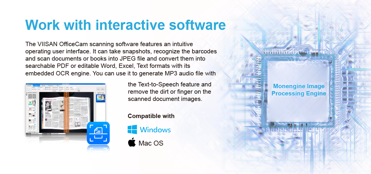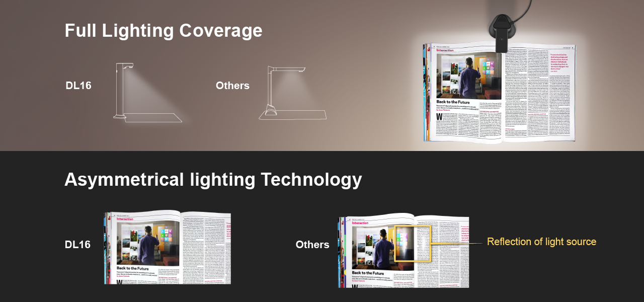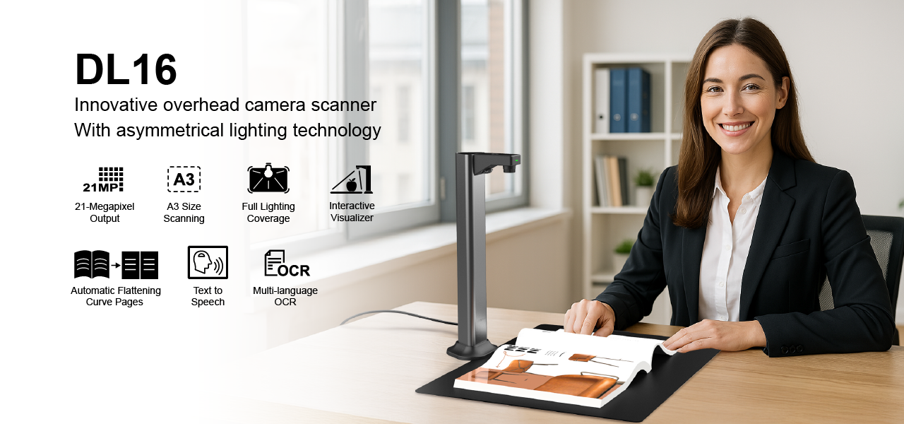 The brand new DL16 is the perfect solution for scanning documents and books with stunning clarity. Its super-high resolution and high frame rate video output quality ensure that the image is captured in vivid detail. The patented short-arm design provides unique flexibility and ease of use, making it easy to scan documents and books from any angle. With proprietary full lighting coverage technology, this camera guarantees perfectly lit images in any environment. The 3D Noise Reduction (3DNR) technology ensures that visual noise is minimized, enhancing image quality. Plus, the Curved Flattening and Desktop Cropping technologies make it simple to digitize all types of documents and books.