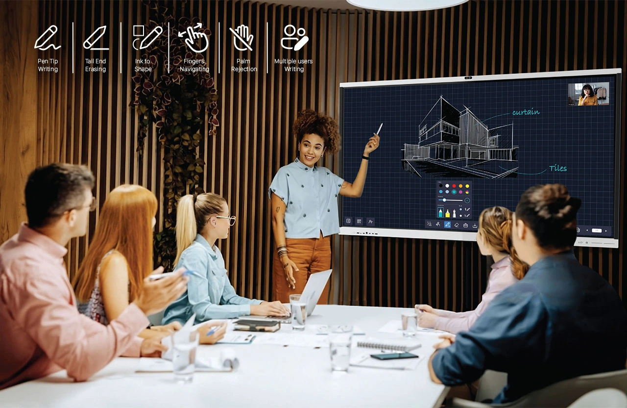 Simply remove the pen from its holder, and the Whiteboard app or annotation mode launches automatically. This convenient feature allows you to quickly initiate team collaboration with ease.