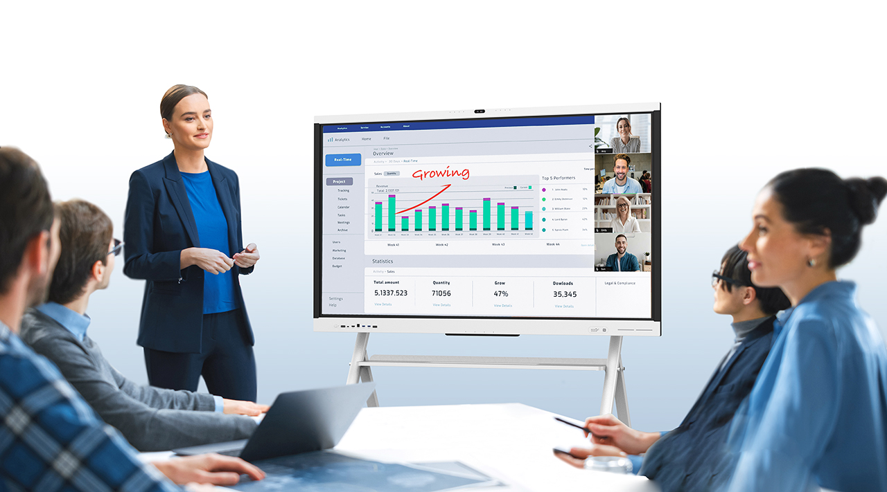 Available in 65”, 75”, 86”, and 98” sizes, this collaborative whiteboard runs on the latest Android OS and offers a wide range of customizable configurations, providing an immersive and flexible collaboration experience—anytime, anywhere.