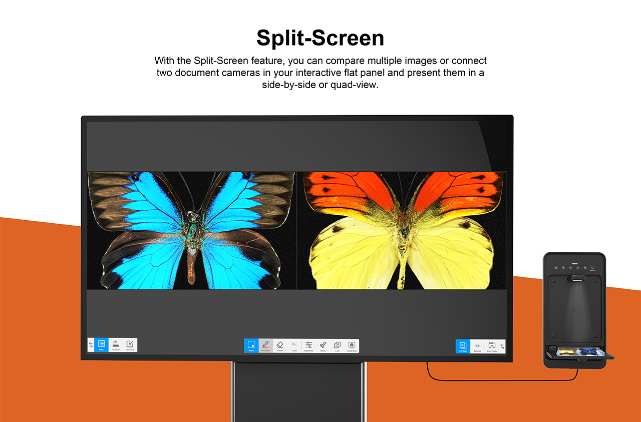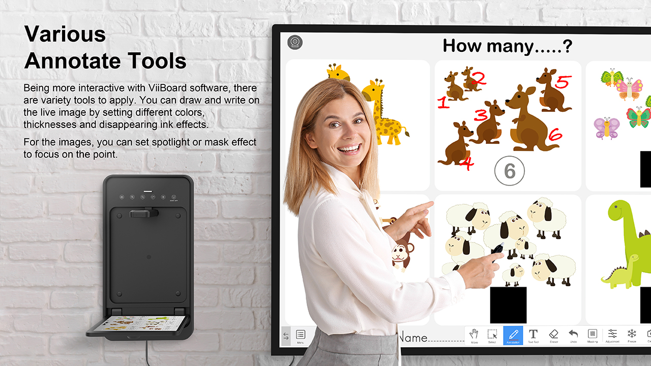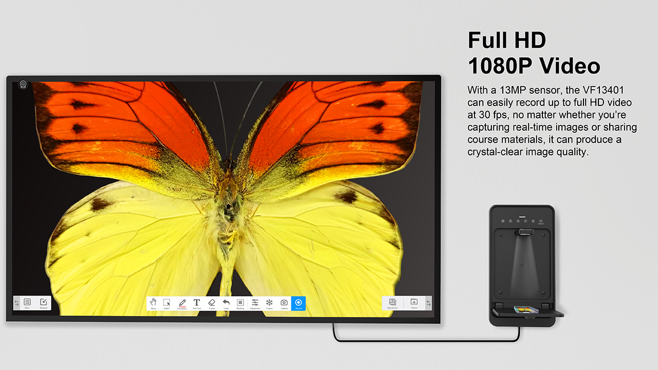 To optimize your classroom interactivity, the wall-mounted visualizer includes ViiBoard software which allows you to show all media directly on the Interactive Flat-Panel Display and also records videos with annotation while demonstration, not only enhancing the teaching in the classroom but also improving asynchronous distance learning.
