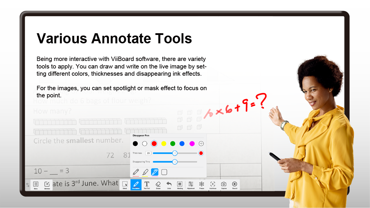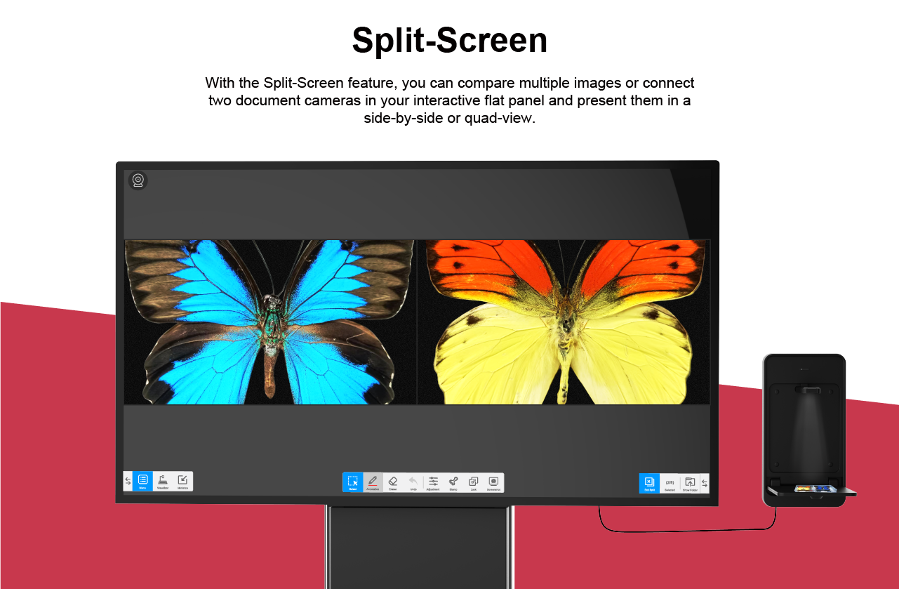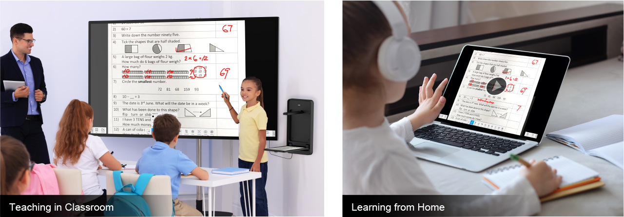 To optimize your classroom interactivity, the wall-mounted visualizer includes ViiBoard software which allows you to show all media directly on the Interactive Flat-Panel Display and also records videos with annotation while demonstration, not only enhancing the teaching in the classroom but also improving asynchronous distance learning.