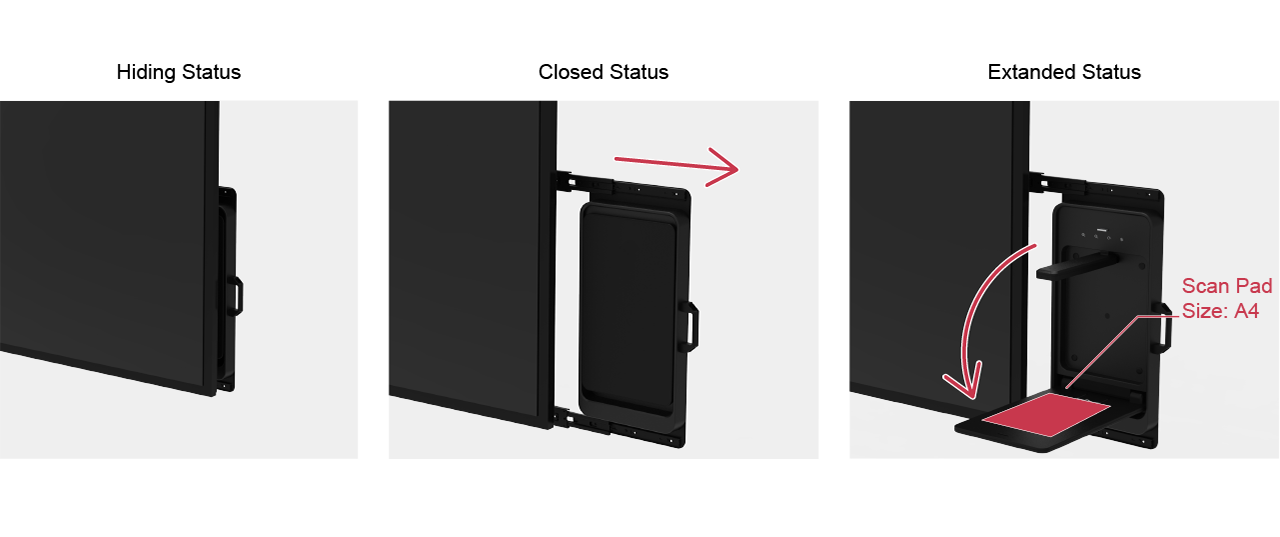 The retractable mount slider allows you to make hide and extend the visualize behind the Interactive Flat-Panel Display. (Option: VF84SH Only)